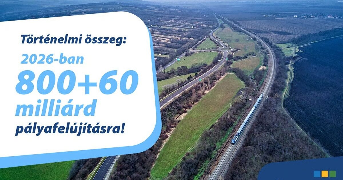 Hungary’s railway infrastructure manager will include HUF 60 billion (approx. EUR 155 million) from its own resources in its 2026 business plan for maintenance and renewals, in addition to the HUF 800 billion (approx. EUR 2.07 billion) earmarked for infrastructure development through joint funding by the Hungarian state and the European Investment Bank (EIB).