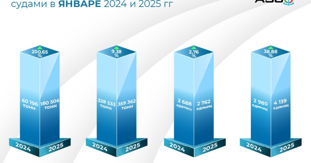 In January 2025, Azerbaijan Caspian Shipping Company (ASCO) recorded an increase in cargo transportation volumes in all segments. The largest increase was demonstrated by the transportation of dry cargo – 180,506 tons against 60,196 tons a year earlier, which corresponds to an increase of 200.65%.