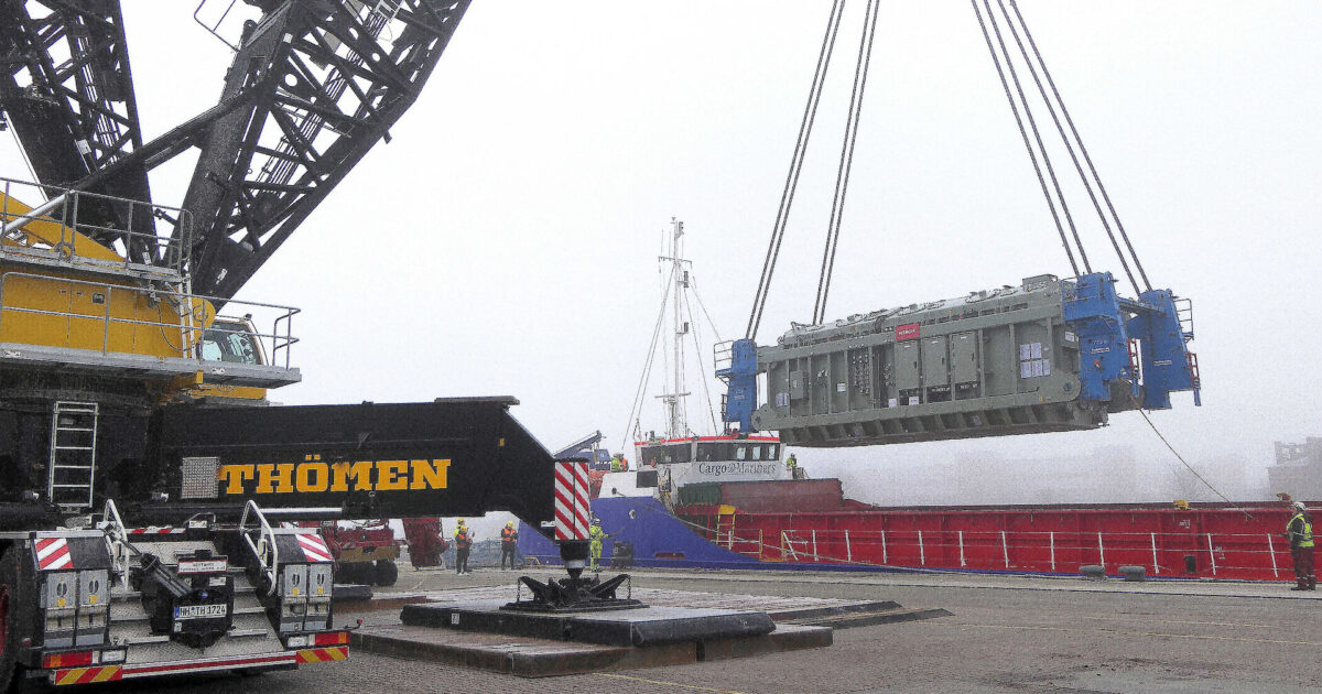 Two transformers with a total weight of 572 tonnes have been successfully unloaded at the Nordlandkai terminal in the Port of Lübeck – the heaviest project cargo ever handled at the port. The operation was carried out by Lübecker Hafen-Gesellschaft (LHG) together with the heavy-duty transport specialists Thömen Spedition (Hamburg) and Baumann Move (Bornheim). The equipment, manufactured by Hitachi Energie in Bad Honnef, was transported to Lübeck on the River Trader from Rotterdam.