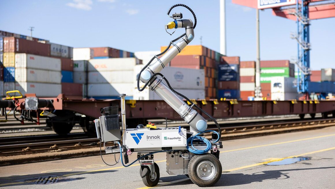 Hamburger Hafen und Logistik AG (HHLA) and the Fraunhofer Center for Maritime Logistics and Services (CML) have successfully completed the “Pin Handling mR” project – the development of a mobile robot for the automatic rearrangement of locking pins on container wagons. The tests were carried out under real conditions at the HHLA Container Terminal Tollerort (CTT), where the robot demonstrated its ability to move autonomously along a train and perform tasks precisely using a manipulator.